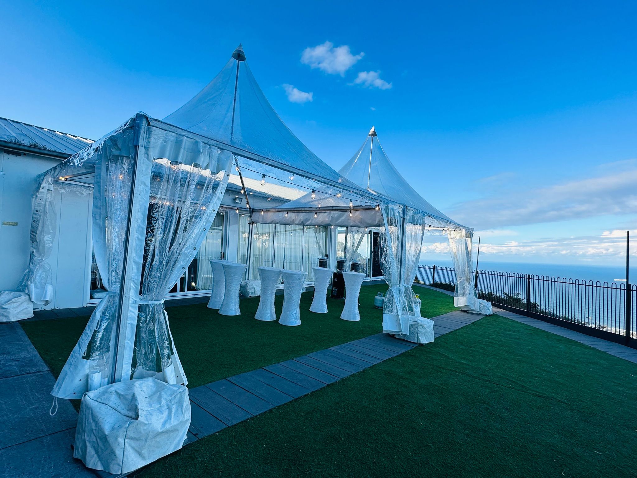 When setting up a pagoda marquee, ensure that our team will have a 1m surrounding clearance around where the customer is setting up the marquee for proper installation and safety. While pagoda marquees are durable, they are not stronger than structural marquees, so customers should be advised accordingly if their event demands extreme weather resistance or long-term use.