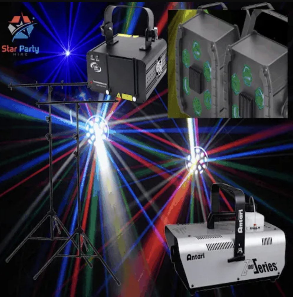 At Star Party Hire, we offer a range of exciting party lighting options to create the perfect atmosphere for any event. The fog/smoke machine is a popular option, providing around 5 minutes of use before a refill is needed. The bubble machine also runs for about 5 minutes and comes with liquid included, with extra liquid available for purchase. For a vibrant touch, we offer laser lights in green, adding a colourful effect to the customers event.