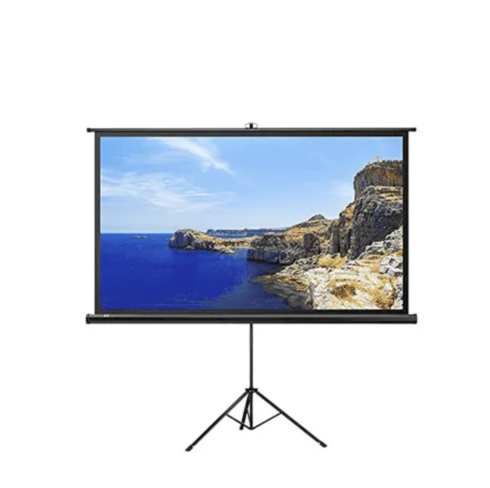 Our projector screens are 120 inches in size and come with a manual pull-down function for easy setup. They also include a stand, making them stable and versatile for different event spaces. It's important to note that the projector and projector screen are hired separately, as there is no bundle deal for these items.
