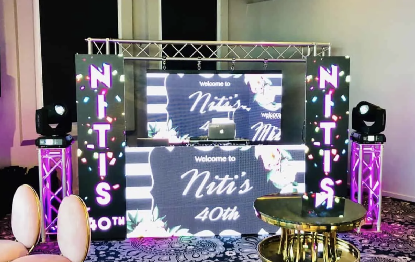 The standard setup includes a 3.9mm pixel pitch screen, with each panel measuring 1m x 0.5m, offering clear visuals suitable for most events.