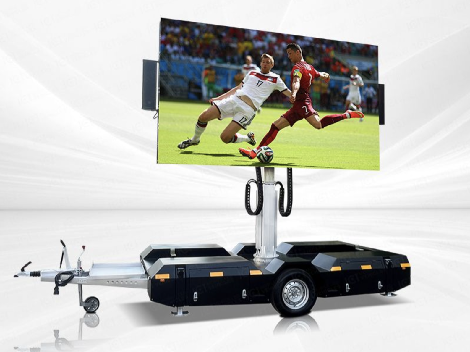 We offer waterproof LED trailer screens, sub-hired from E-Power Media, designed for outdoor events. The screens come in sizes from 2560x1600 mm to 6000x3500 mm, featuring P6, P10, and P4 SMD LED panels for clear and bright displays.